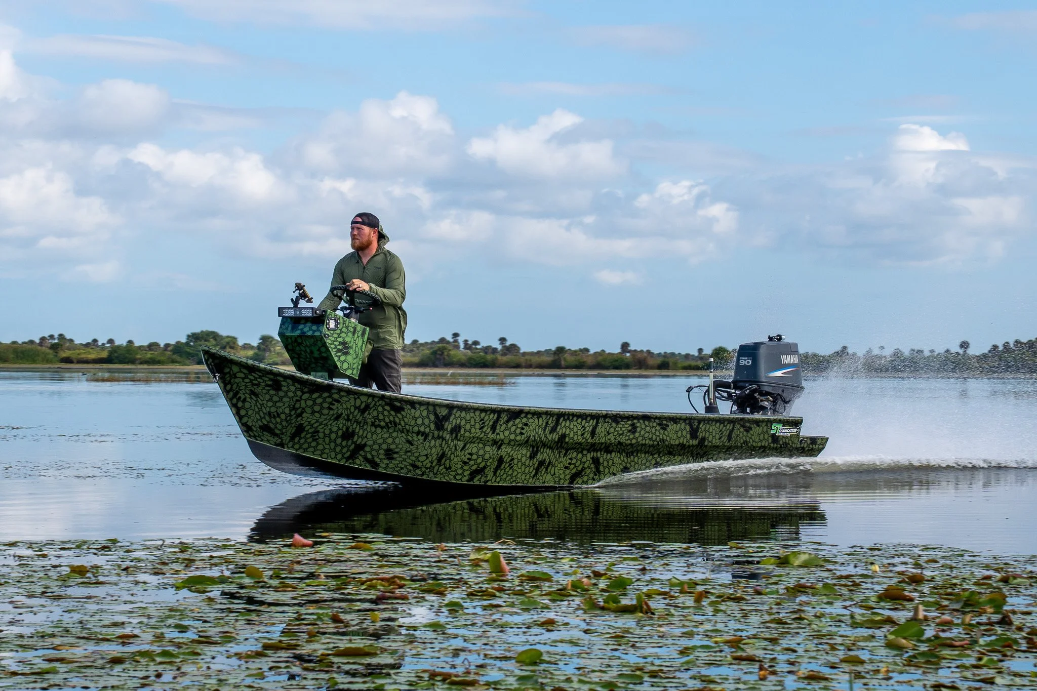 The two boats pictured are what we use to get you on and off comfortably and safely. The duck boat is a 2025 20ft Louisiana Crawfish Skiff.